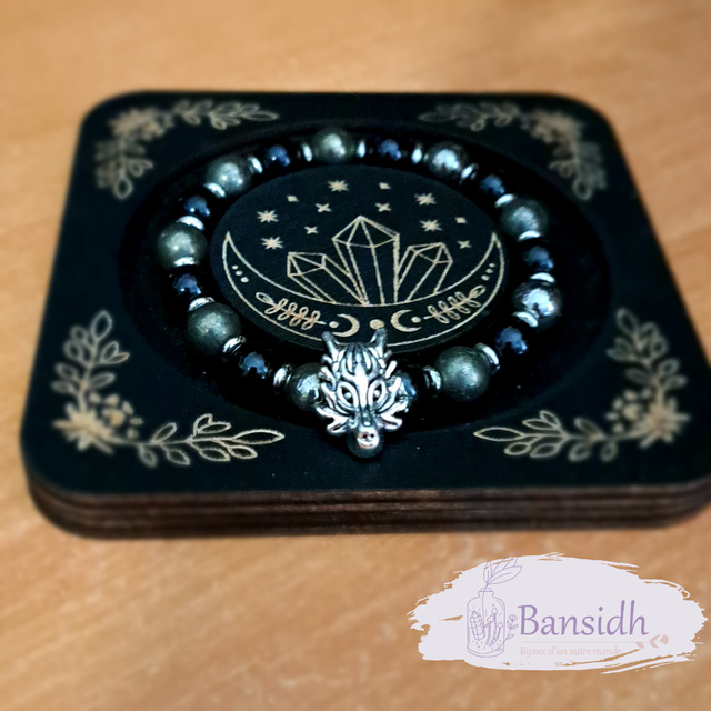 Bracelet en perles de pierres naturelles de tourmaline noire et pyrite