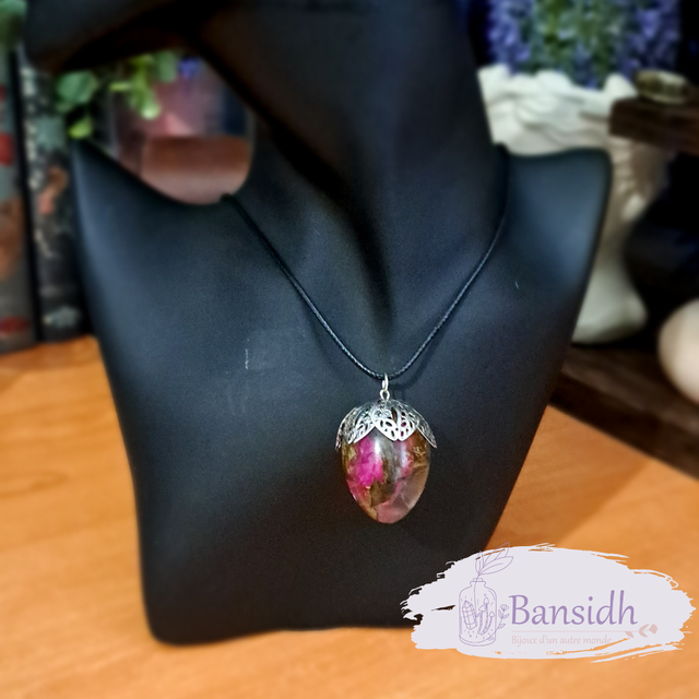 Collier avec œuf pendentif en résine.