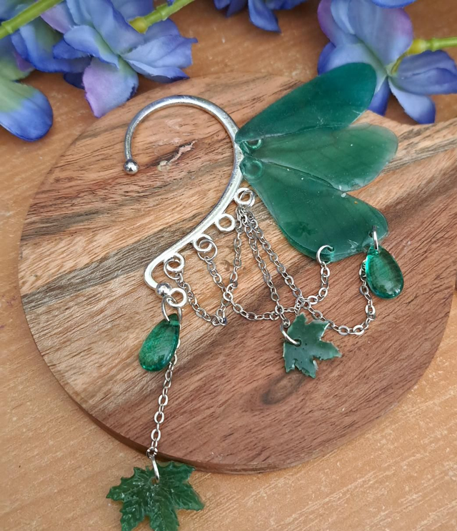 Un magnifique tout d'oreille ornées de petites ailes de fée irisées , de petites clochettes et des pétales iridescentes, qui accompagnera vos tenues Fae, cottagecore, avec légèreté ...